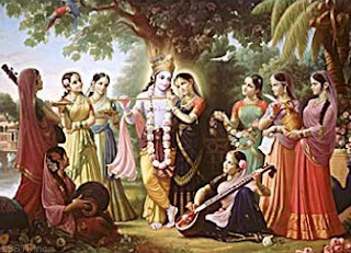 reuniam aos pés do Krishna, cativados pelas melodias encantadas da sua música. Neste mundo de paz, predadores e herbívoros esquecem as suas diferenças e instintos profundos. É essa mesma música que irresistivelmente atrai as pastoras (gopis) para perto do Krishna. Isso simboliza o chamado eterno para o divino. Apresentada neste contexto religioso, a flauta, desde 3000 anos, sempre foi considerada como um instrumento a parte, cuja essência é divina e que emite sons puros e sagrados. Tudo deixa pensar que a flauta, instrumento prolongado da boca e extensão da voz, foi um dos primeiros instrumentos melódicos do homem.